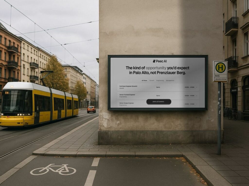 To help attract more talent, the 20-person startup is currently advertising itself on large outdoor ads throughout Germany’s capital city. But beyond its Berlin plans, Meiners told TechCrunch that Peec AI also plans to open a sales-focused office in New York City in the second quarter of next year.